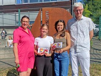 In diesem Jahr nun zeichnete die Fachschaft, vertreten durch ihren Vorsitzenden Patrick Jacoby, Anna Wagner aus der Klasse 10b und Mia Meier aus der MSS 11 aus. Als Dank erhielten die beiden Kino- und Buchgutscheine in Höhe von jeweils 50 EUR. Schulleiterin Dr. Sonja Tophofen lobte das große Engagement der Schülerinnen und dankte dem Förderverein des Reichswald-Gymnasiums, der die Kosten für die Preise übernommen hatte.