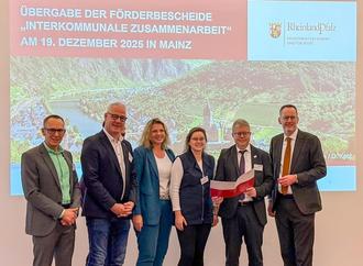 Am 19. Dezember übergab Michael Ebling, Minister des Innern und für Sport, im Rahmen einer kleinen Feierstunde im Forum des Landesmuseums Mainz den Förderbescheid aus der Pilotförderung ”Interkommunale Zusammenarbeit” für das Projekt “Interkommunale Cybersicherheit”. Im Projekt “Interkommunale Cybersicherheit” werden die Verbandsgemeinden Bruchmühlbach-Miesau, Enkenbach-Alsenborn, Landstuhl, Ramstein-Miesenbach und Weilerbach in den Jahren 2026 und 2027 gemeinsam IT-Sicherheitsprodukte und IT-Dienstleistungen im Gesamtwert von 321.412 €uro beschaffen, die aufgrund der Synergieeffekte und dem Effizienzgewinn komplett von Land Rheinland-Pfalz gefördert werden.