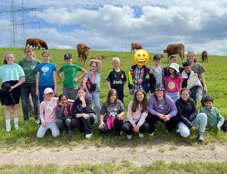 Am Montag, dem 13. Mai, gingen die Schüler der Klasse 4b von der Grundschule Hütschenhausen/ Spesbach auf den Bauernhof der Familie Hirsch. Dort erklärte Frau Hirsch den Kindern viel über die Tiere, die dort leben. Dies waren Hühner, Kühe mit ihren Kälbern und Pferde, sowie die Schafe der Nachbarn. Die Kinder lernten auch die zwei Hofhunde Sally und Bella kennen. Außerdem durften die Kinder an einem selbst gebauten Kuheuter das Melken probieren. Frau Hirsch erklärte den Kindern auch viel über das Getreide. Zum Abschluss des Tages spielten die Kinder 1,2, oder 3. Hier wurden Fragen rund um das neu Gelernte gestellt.