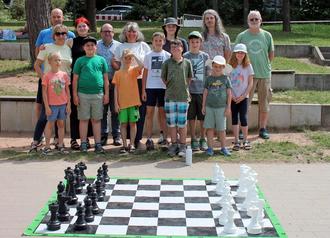 Ruhig, konzentriert und voller Taktik: Im Rahmen des Ferienprogramms hat der Schachclub Ramstein-Miesenbach am idyllischen Seewoog zu seinem beliebten „Schach am Seewoog“-Event eingeladen. Bei herrlichem Sommerwetter hatten Kinder von 6 bis 10 Jahren die Möglichkeit, das königliche Spiel unter fachkundiger Anleitung kennenzulernen. Erfahrene Vereinsmitglieder halfen dabei, erste Strategien zu entwickeln. Neben den 12 Teilnehmenden wurden weitere interessierte Kinder und deren Eltern unter den vielen Besuchern des Seewoogs vom Riesenschachfeld angezogen. Dieser gelungene Nachmittag wurde durch die Überreichung der obligatorischen Schwimmbadkarten abgerundet.