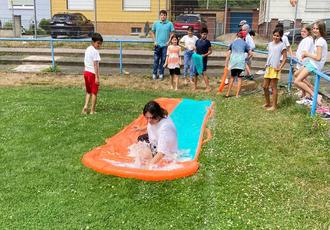 Die erste Woche der Sommerferien wurde vom neunköpfigen Team des Jugendbüros auf dem Gelände des FV Olympia für 26 Kids gestaltet. Neben verschiedenen sportlichen Aktivitäten, wie Wasserspielen, wurde auch die Kreativität der Teilnehmenden gefördert und gefordert. Unter Anderem standen ein Schwimmbadbesuch im AZUR, T-Shirts batiken und Bilderrahmen basteln auf dem vielfältigen Programm. Von 8:00 bis 16:00 Uhr wurde an fünf Tagen getanzt, gemalt und gelacht. Highlight war die „Für’n Appel und en Ei“-Aktion, bei der die Kinder in Gruppen durch die Ramsteiner Geschäfte streiften und kleine Gegenstände, gegen immer größere eintauschten. Diese wurden am letzten Tag in einer Tombola verlost. Seitens des Vereins wurde das Team von Herrn Horst Cherdron durch Rat und Tat unterstützt. Vielen Dank dafür.