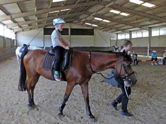 Unter der Anleitung von Christiane Weber und sieben Betreuerinnen wurden den Jungs und Mädchen spielerisch der Umgang mit Ponys und Pferden beigebracht. Dazu gehörten vor allem Bewegungsübungen und Koordination im Umgang mit Tieren.