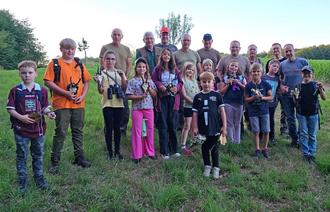 Zunächst wurden die Kinder und Eltern an der Michelsruhe in Kottweiler-Schwanden begrüßt. Nach einer kurzen Wanderung zur Jagdhütte wurde vieles über die Tiere unseres Reviers erklärt und ein vollgepackter Jagdrucksack wurde ausgepackt. Dabei konnten die Kinder viele Jagdutensilien kennenlernen. Nebenbei gab es zur Stärkung Wildbratwürste, Frikadellen und Getränke. Schließlich begleiteten die Kinder die Jäger zu den Hochsitzen wo alle viele verschiedene Tiere beobachten konnten. Nach dem Ansitz trafen sich alle noch einmal zum Austausch an der Hütte. Zum Abschluss erhielten alle Kinder ein Rehgehörn und einen Schlüsselanhänger mit einem schönen Wildmotiv zur Erinnerung. Die Kinder waren alle der Meinung, dass wir nächstes Jahr wieder am Ferienprogramm teilnehmen müssen. Die Schwimmbadkarten zur Belohnung gibt’s im Nachgang im Jugendbüro.