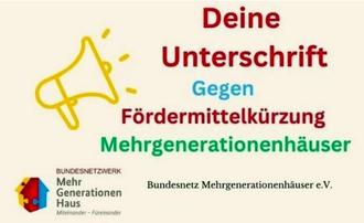 Inzwischen hat das „Bundesnetzwerk MehrGenerationenHaus“ eine Petition gestartet mit dem Ziel, die geplanten Kürzungen der Fördermittel zu verhindern.