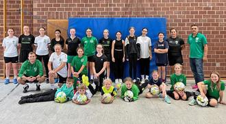 Der anhaltende Regen am Mittwoch machte das geplante Training auf dem Rasenplatz des SVKs unmöglich. Daher wurde kurzerhand in die Sulzbachhalle gewechselt. Hier hatten die Verantwortlichen des SVKs rund um Achim Scherne für die 17 Mädchen, darunter auch sechs amerikanische Mädchen, verschiedene Trainingsstationen aufgebaut.