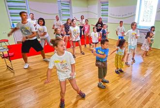 Freitags strahlte dann das Maskottchen der Kids, der „Ramsteiner HipHop-Löwe“ und Sara Muthig umso mehr, weil so viele kamen und auch die Moves zu „TocaToca“, „Can’t Stop The Feeling“ usw. ganz schnell lernten. Bevor Roland Palm Schwimmbad-Freikarten an alle verteilte, wollte er nicht nur zuschauen und machte begeistert mit - ein Naturtalent!