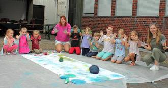 An zwei Terminen innerhalb der Kindergartenferien wurde für kleine Künstler Großes geboten. Mit Spielzeugautos, Bällen und geworfenen Schwämmen konnten jeweils 9 Kinder an vier Stationen nach Lust und Laune Farbe auf Leinwänden verteilen. Dabei entstanden viele interessante Muster und neue Farben. Ein kleines Kunstwerk aus Wasserfarben durften dann auch mit nach Hause genommen werden. Vielen Dank an die Kita-Sozialarbeiterinnen Ina Born und Kathrin Dahler für ihren Einsatz im Ferienprogramm.