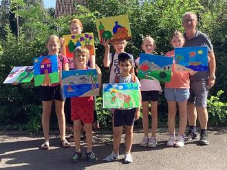 Aufgrund der hohen Nachfrage nach dem Malkurs mit Maler Hans Roßberger, wurde sieben weiteren kleinen Künstlern und Künstlerinnen die Möglichkeit geboten, ihrer Kreativität auf der Leinwand freien Lauf zu lassen. Unter der Anleitung und Unterstützung durch Herrn Roßberger kamen die unterschiedlichsten Kunstwerke zustande. Über Berge und Meer bis zu Blumenvasen und Pferden. Alle Teilnehmenden konnten am Ende mit ihren Bildern ihre Familie begeistern und freuten sich über die Schwimmbadkarten.