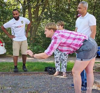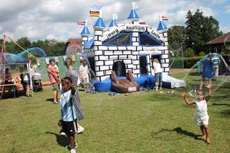 Die Abteilungen Tennis, Boule, Schach und Volleyball luden zum Ausprobieren der Sportarten ein und präsentierten einen lebendigen Ausschnitt des reichhaltigen Vereinsangebots. Gestärkt mit Frischem vom Grill und multikulturellen Leckerbissen, die von den Gästen selbst beigesteuert wurden, konnte im Schatten geplauscht und entspannt werden. Währenddessen konnten sich die Kinder bei den weiteren Attraktionen wie der Hüpfburg, Kreativaktionen, BubbleSoccer oder Geschicklichkeitsspielen austoben.