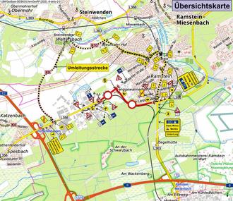 Die Umleitung verläuft über die K 9 bis Weltersbach, K 10 und L 363 nach Ramstein in beiden Richtungen. Die Bauarbeiten sollen bis Ende Januar 2026 abgeschlossen sein, wobei der Termin witterungsabhängig ist.