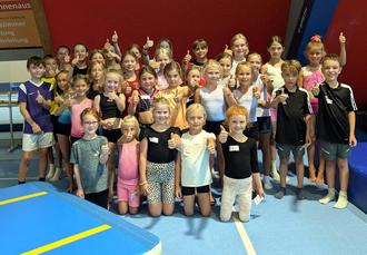 In der letzten Ferienwoche nutzten über 60 Mädchen und Jungen das Angebot des Turn-Team Sickingen e.V., um sich bei einem sportlichen Tag voller Sprungkraft und Bewegungsfreude noch einmal so richtig auszupowern. Die Trainerinnen des gastgebenden Vereins hatten viele abwechslungsreiche Stationen aufgebaut, an denen die Kinder verschiedene Übungen ausprobieren konnten. Neben vielen Trampolinen kam dabei als besonderes Highlight eine sogenannte Airtrack-Matte zum Einsatz: Dabei handelt es sich um eine luftgefüllte, federnde Bahn, die ein besonders gelenkschonendes und dynamisches Turnen ermöglicht. Egal ob die jungen Sportlerinnen und Sportler schon über turnerische Erfahrung verfügten oder nicht - an diesem Tag kam jedes Kind auf seine Kosten und der Spaß war allen deutlich anzusehen. Zum Abschluss überreichte der Beigeordnete der Verbandsgemeinde Torsten Lenhart allen Kindern als kleine Belohnung die obligatorischen Freikarten für das Freizeitbad Azur und dankte allen Betreuerinnen für ihren tollen Einsatz.