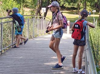 Am Dienstag, dem 12. August, fanden sich erneut 11 Kinder im Alter von 7-14 Jahren bei 38 Grad Celsius am Seewoog ein, um unter professioneller Anleitung die Nutzung einer Kamera zu erlernen. Der Fotograf Aziz Kolanj zeigte den angehenden Fotografen, wie man mit Kameras umgeht und wie ein Profi das Maximum aus den Geräten holt. In 5 Gruppen wurden mit Action-, Spiegelreflex- und einfachen Kameras allerlei Motive an den verschiedenen Arealen des Seewoogs abgelichtet, darunter auch die Kinder selbst. Das Team des Jugendbüros betreute die Teilnehmer und zum Schluss bekam jedes Kind eine Karte für einen Besuch im AZUR.