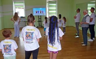 In dem großzügig hergerichteten Tanzsaal durften die Jungs und Mädchen nach Herzenslust tanzen. Die jüngeren Jahrgänge wurden eingewiesen in die Grundschritte des Tanzens. Dabei standen weniger Tanzformationen und mehr der Spaßfaktor des sportlichen Tanzens im Blickpunkt. Den jungen Leute war anzumerken wie ernst sie die Anweisungen der Betreuer nahmen.