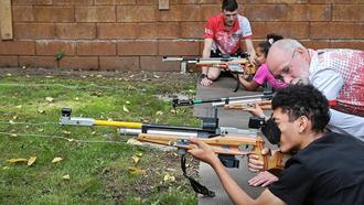 8 Jungen und Mädchen hatten sich am Samstag auf der Trainingsanlage des SV-Edelweiß Steinwenden in der Bergstraße eingefunden, um einen Einblick in den Biathlon Sport und das Bogenschießen zu erhalten. Unter Fachkundiger Anleitung durch Mitglieder des Schützenvereins konnten sich die Teilnehmer/innen am Luftgewehr- und Bogenschießen versuchen.