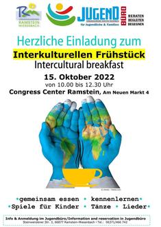 Wir laden Sie herzlich zu unserem Interkulturellen Frühstück am Samstag, 15. Oktober, von 10.00 bis 12.30 Uhr ein. Geplant ist neben gemeinsamen Essen und gegenseitigem Kennenlernen auch ein Bühnenprogramm und Spiele für Kinder. Zudem darf jeder mit einer landestypischen Leckerei oder einem Gesangs- oder Tanzbeitrag mitwirken. Wir bitten Sie, sich vorher im Jugendbüro anzumelden und freuen uns auf zahlreiches Erscheinen.
