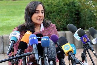 Auch die kanadische Verteidigungsministerin Anita Anand trat in der Mittagspause vor die Medien.