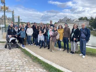 : Freundesgruppe vorm Schloss im Parc des Érables.