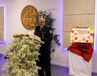 Nach 17 Jahren als Wehrleiter der Feuerwehr der Verbandsgemeinde Ramstein-Miesenbach wurde Franz-Josef Preis durch Bürgermeister Ralf Hechler aus seinem verantwortungsvollen Amt entpflichtet. Hechler würdigte die geleistete Arbeit sowie die Beharrlichkeit beim Umsetzen verschiedenster Projekte ohne die die Feuerwehr nicht da wäre, wo sie jetzt ist. Als einige Beispiele erwähnte er hier das Sicherheitskonzept zum Rheinland-Pfalz-Tag, das Fahrzeugkonzept der Wehr sowie der Umbau und die Erweiterung der Feuerwache. Zum Dank überreichte er ein handgeschnitztes Wappen der Verbandsgemeinde.