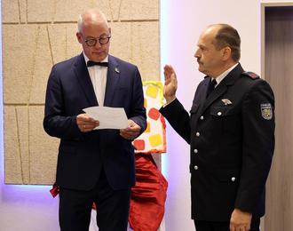 Um den Formalien gerecht zu werden, musste nun auch der stellvertretende Wehrleiter Matthias Hecktor aus seinem Amt entpflichtet werden, um zum Wehrleiter verpflichtet werden zu können. Hecktor legte, wie anschließend sein Stellvertreter Martin Fischer den Amtseid ab, um nun die Wehren der der Verbandsgemeinde für zehn Jahre zu führen.