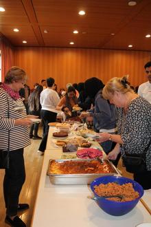 Ein vielfältiges Miteinander erlebten die 200 Besucher und Besucherinnen beim interkulturellen Frühstück im Bürgerhaus Hütschenhausen. Die Veranstaltung, organisiert vom Jugendbüro der Verbandsgemeinde, bot nicht nur kulinarische Genüsse aus aller Welt, sondern auch die Gelegenheit zum Austausch und Kennenlernen. Neben Sofronius Spytalimakis, dem Integrationsbeauftragten des Kreises und Roland Palm, Beigeordneter der Verbandsgemeinde, begrüßte Markus Gödtel vom Jugendbüro die Gäste und eröffnete das bunte Büffet. Spezialitäten aus den unterschiedlichsten Ländern wie Syrien, der Türkei, Afghanistan, Polen und Deutschland wurden mitgebacht. Neben süßen und herzhaften Speisen sorgten auch musikalische Beiträge für eine lebendige Atmosphäre. Die Künstler und Künstlerinnen präsentierten Kulturgut ihres Herkunftslandes und begeisterten die Zuhörer. Aufwarten konnte das Jugendbüro dann noch mit einem Überraschungsgast: der philippinische A-cappella-Chor „Imusicapella“, der auf seiner Reise zum „european grand prix for choral singing“ in Spanien einen kurzen Stopp in der Westpfalz machte und zwei ihrer Lieder dem Publikum in Hütschenhausen präsentierte. Selbst aktiv konnten die großen und kleinen Besucher an Stationen des Schachclubs Ramstein-Miesenbach oder des Jugendbüros mit Mal- und Bastelangebot werden. Die Besucher und Besucherinnen zeigten sich begeistert von der offenen und herzlichen Stimmung. Viele nutzten die Gelegenheit, neue Kontakte zu knüpfen und mehr über andere Kulturen zu erfahren. Das Jugendbüro bedankt sich bei allen Mitwirkenden, die dazu beigetragen haben, dass dieser Vormittag rundum gelungen war. Die Integrationsarbeit des Jugendbüros wird gefördert durch das Ministerium für Familie, Frauen, Kultur und Integration Rheinland-Pfalz.