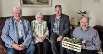 In der Pörrbacher Straße 9 feierte Lilli Hess diesen Ehrentag. Frau Hess wurde in Obermohr geboren und ging auch im Ort zur Schule. Konfirmation und Trauung feierte sie jeweils in der protestantischen Kirche in Steinwenden. Mit viel Hingabe widmete sie sich der Hausarbeit und Kindererziehung und später der Pflege der Eltern, als diese sich nicht mehr eigenständig versorgen konnten. Besondere Erfüllung fand sie bei der Pflege ihres geliebten Gartens. Zu diesem außergewöhnlichen Ehrentag gratulierten neben den zwei Töchtern, dem Schwiegersohn, vier Enkeln und fünf Urenkeln auch Pfarrer Bernhard Schäfer für die protestantische Kirchengemeinde, Dr. Walter Altherr für den Landkreis Kaiserslautern sowie Ortsbürgermeister Ralf Guckenbiehl.