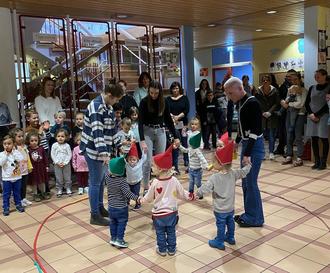 Zur Einweihung des neuen Spielgerätes für die Einjährigen hatte die Kommunale Kindertagesstätte ‚Villa Kunterbunt‘ in ihre Räumlichkeiten eingeladen. Das Kita-Personal und die Kinder überraschten die zahlreichen Gäste mit einer toll einstudierten tänzerisch-musikalischen Darbietung, für die es viel Beifall gab.