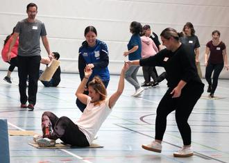 Unter dem Motto „Bewegung ist der Hit, komm mach mit!“ hatte die Bewegungskita „Struwwelpeter“ Ramstein am Freitag, 20. Oktober, eine Bewegungsfortbildung in Kooperation mit der Unfallkasse Rheinland-Pfalz unter Leitung von Dipl. Sportwissenschaftler Christian Sowieja (Fachbereich Sport, Bewegung und Verkehr der Unfallkasse RLP) organisiert. Um möglichst vielen Kitas die Möglichkeit zu bieten, an diesem für alle wichtigen Thema teilzunehmen, wurden weitere Kitas aus der Stadt und Verbandsgemeinde Ramstein-Miesenbach eingeladen.