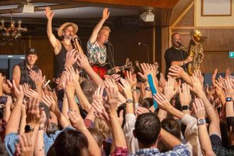 Die Schweizer Musikband der so genannten „Neuen Volksmusik“ hat am vergangenen Freitag vor rund 1.200 begeisterten Fans ihre Visitenkarte im Congress Center in Ramstein hinterlassen. Die 2008 gegründete Band mit den fünf Musiker Andreas Frei, Roman Wüthrich, Marco Graber, Michael Hutter und Roman Pizio sorgte für einen Höhepunkt im Jahresprogramm des CCR. Schon nach den ersten Takten war das Publikum ausgelassen mit dabei und feierte die Fäaschtbänkler für ihre Musik, die mehrere Stilrichtungen wie Pop, Volksmusik, Schlager, Rock oder House erfolgreich verbindet. Neben eigenen Liedern ist die Band auch für ihre Genre-Medleys bekannt, von denen sie auch beim Konzert in Ramstein Kostproben gaben.