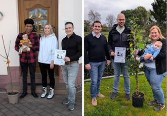 Während Lalorie Enya in der Wiesenstraße noch ihr Fläschchen am frühen Nachmittag genoss, inspizierte Mats im Unterdorf den neuen Obstbaum ganz genau. Beide kamen im Juni zur Welt. Die junge Familie Armbrust hat den Baby-Baum bereits fest in der Gartenplanung integriert. An anderer Stelle wird in der Hauptstraße bereits von den älteren Geschwistern stolz das junge Familienmitglied Hussain vorgestellt, der gerade einmal zwei Monate alt ist. Bis Papa von der Arbeit nach Hause kam, hatten die Kinder bereits feste Pläne für den künftigen Vitaminspender der Familie.