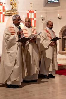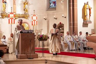 Dekan Steffen Kühn, der die Pfarrei einige Monate mitverwaltet hatte, verlas die Ernennungsurkunde und stand der Ernennung vor. Gleichzeitig wurde auch Pater Michael zum Kooperator ernannt. Die beiden Patres gehören dem Orden „Missions-Kongregation vom Allerheiligsten Sakrament (MCBS)“ an und stammen aus dem indischen Bundesstaat Kerala. Pater Pious studierte Philosophie und Theologie in Indien und wurde 2000 zum Priester ernannt. 2007 kam er nach Deutschland und war in Rodalben, Dahn und Zweibrücken tätig. Viele Gäste aus seinen früheren Pfarreien waren nach Ramstein gekommen und feierten den Gottesdienst mit, der musikalisch von einem Projektchor der Pfarrgemeinde mitgestaltet wurde.