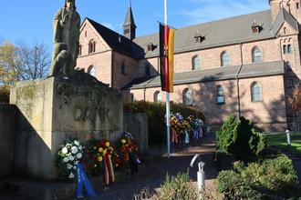 11.15 Uhr Ehrenmal an der katholischen Pfarrkirche in Ramstein mit Abordnungen der NATO-Statten vom Flugplatz Ramstein