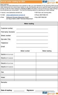 Stadtwerke Ramstein-Miesenbach have decided to offer you more flexibility for the upcoming 2024 annual meter reading and not to send meter readers on site.