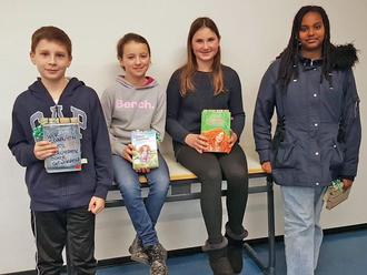 Johannes Matheis aus der Klasse 6c heißt der diesjährige Sieger des schulinternen Vorlesewettbewerbes. Er setzte sich gegen die Klassensieger der anderen sechsten Klassen durch. Die anderen Plätze gingen an die anderen Klassensieger Elim Tesfay (Klasse 6a), Maya Klemens (6b) und Emilia Marisol Tabaoda Prado (6d).