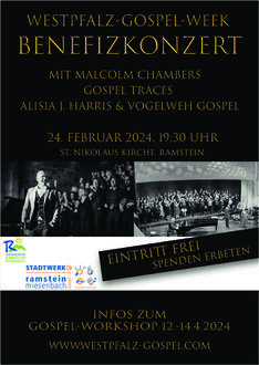 Aller guten Dinge sind bekanntlich drei und Musik macht glücklich! Deshalb tourt die „Westpfalz-Gospel-Week“ auch in diesem Jahr wieder durch die Region. Das große Finale findet in diesem Jahr am Samstag, 24. Februar, um 19.30 Uhr in der katholischen Pfarrkirche St. Nikolaus in Ramstein statt. Wo könnte der Gospel besser gefeiert werden als in der Stadt, in der tausende Amerikaner leben und Gospel genauso lieben wie die Erfinderin der Gospel-Week Alexandra Dietz.