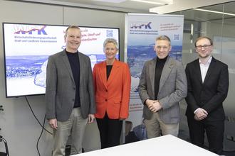 Beim traditionellen Jahresrückblick der Wirtschaftsförderungsgesellschaft Stadt und Landkreis Kaiserslautern (WFK) zogen Landrat Ralf Leßmeister, Oberbürgermeisterin Beate Kimmel, WFK-Geschäftsführer Dr. Philip Pongratz und Prokurist Tim Teubner-Littig am Donnerstag, 29. Januar, eine insgesamt positive Bilanz. Trotz der bundesweit schwierigen Finanzlage und herausfordernder Rahmenbedingungen zeige sich die Wirtschaftsregion Kaiserslautern weiterhin als attraktiver Standort mit stabiler Beschäftigung und hoher Nachfrage nach Gewerbeflächen.