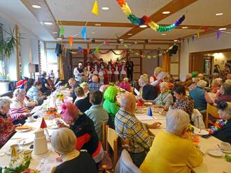 Zum närrischen Seniorencafé lud das „Lokale Bündnis für Familie“ gemeinsam mit dem „Ehrenamtlichen Besuchsdienst“ ins Mehrgenerationenhaus ein und rund 80 Seniorinnen und Senioren füllten den großen Saal des Hauses. Joe Felka, der Beigeordnete der Stadt, führte durch das großartige Nachmittagsprogramm.