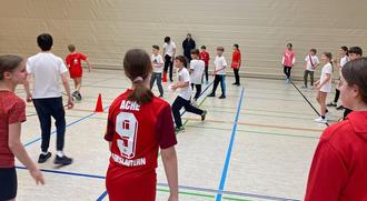 Die Stimmung war prächtig, die Partien spannend. Über drei Sportstunden hinweg trugen in der vergangenen Woche die Klassen der Orientierungsstufe ihre mittlerweile schon traditionellen Völkerballturniere aus. Auch in diesem Jahr waren die Partien, getrennt nach Klassenstufen, heiß umkämpft. Beim Turnier der sechsten Klassen setzten sich wie bereits im letzten Jahr die Schüler der Klasse 6e (Klassenleiter: Jochen Schäffler) durch. Die Organisation hatte die Fachschaft Sport übernommen, unter Federführung von Maximilian Murr.