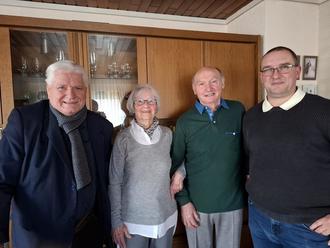 Die ehemalige Verwaltungsangestellte auf der AirBase Ramstein und der frühere Heizungstechniker und leidenschaftliche Fußballtorwart, sind nunmehr seit 60 Jahren glücklich verheiratet. Dr. Walter Altherr als Kreisbeigeordneter und der 1. Beigeordnete der Ortsgemeinde Sven Radner, gratulierten zu dem fröhlichen Ereignis und wünschten alles Gute für die gemeinsame Zukunft. (Ortsgemeinde Hütschenhausen)