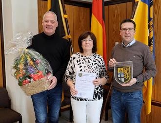 Zum 1. Februar wurde Frau Monika Schmidt in den wohlverdienten Ruhestand verabschiedet. Seit dem Jahr 2004 war Monika Schmidt in der Grundschule“ Moorbachtal“ in Steinwenden für die Betreuung der Kinder tätig. Die gelernte Friseurin arbeitete nach ihrer abgelegten Prüfung im Friseurhandwerk lange Jahre im Salon Hans und Brigitte Nermerich in Landstuhl. Nach der Erziehungszeit der beiden Kinder ging es dann in „Anne‘s Bastelshop“ in Ramstein und danach beim DRK als Begleiterin der Behindertentransporte. Monika Schmidt hat in den über 20 Jahren bei uns in der VG Ramstein- Miesenbach stets vorbildlich und mit großer Leidenschaft mit den Kindern, dem Kollegium und den Eltern zusammengearbeitet. Bürgermeister Ralf Hechler bedankte sich recht herzlich bei Monika Schmidt und wünschte ihr für den Ruhestand alles erdenklich Gute. Außerdem überreichte er einen Blumengruß sowie das Glaswappen der Verbandsgemeinde Ramstein-Miesenbach. Den Wünschen schlossen sich der 1. Beigeordnete Marcus Klein, Stefan Weisenauer für die Büroleitung und Joshua Schirra für den Personalrat recht herzlich an.