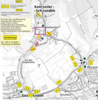 Wegen eines Hausneuanschlusses muss die Steinwendener Straße in Kottweiler-Schwanden zwischen den Hausnummern 8 und 12a ab Montag, 6. März, für den Verkehr voll gesperrt werden. Der Anliegerverkehr bis zur Baustelle ist frei. Die Umleitung ist ausgeschildert.