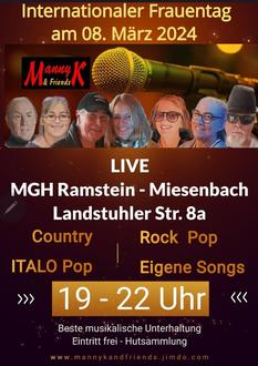 Dazu ein Veranstalter aus 2023: "Lasst uns gemeinsam mit Manny K & Friends einen unvergesslichen Abend verbringen. Die sechs Musiker sind eine mitreißende Acoustic-Band, die euch mit ihren außergewöhnlichen Talenten begeistern wird.