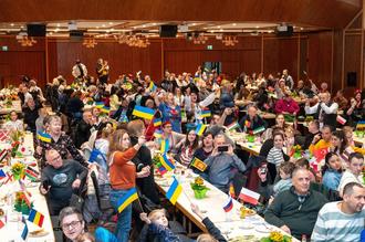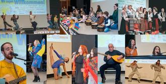 Anschließend begeisterten die Akteure des Bühnenprogramms das Publikum mit ihren abwechslungsreichen Beiträgen: Sanftem Pianospiel beim Eintreffen der Gäste folgte ein lebendiger Auftritt der Kinder und Erzieherinnen von der KiTa Pinocchio, die viel Spaß auf der Bühne zeigten. Ein traditionell gekleideter ukrainischer Chor war mit seinen Volksweisen ebenso Teil der musikalischen Darbietungen wie mehrere Solokünstler aus Deutschland, Syrien und der Ukraine. Dazwischen gab es HipHop Tanzeinlagen von zwei jungen Tänzerinnen aus Weißrussland und der Ukraine, sowie von den Mädels der GTS Tanzgruppe der Wendelinusschule und einer jungen Balletttänzerin.