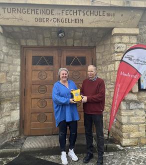Heute konnte Übungsleiterin Anja Oder, die bei der TuS 1848 Ober-Ingelheim zuständig für Herz- und Rehasport ist, den neuen Defibrillator entgegen nehmen. Der alte musste dringend ausgetauscht werden, jedoch sind neue Geräte sehr teuer. Aber die Herzsportgruppe hält zusammen und so konnte der neue Defibrillator dank Spenden und Einnahmen aus dem Adventscafé, das die Gruppe am 04.12. veranstaltete, angeschafft werden. An dieser Stelle geht ein großer Dank an alle Helfer und Spender!