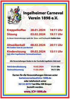Die Karten können unter kartenvorverkauf@icv-1898.de oder telefonisch unter 06132-85707 bestellt werden.