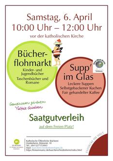 Am Samstag, den 6. April steht unser Büchereiteam von 10:00 Uhr bis 12:00 Uhr mit seinem Bücherflohmarkt vor dem Haupteingang der Katholischen Pfarrkirche in Heidesheim. Die Bücher werden gegen eine Spende abgegeben. Mit dem Erlös finanzieren wir in diesem Jahr die Abschlussveranstaltung für unsere Lesesommerkinder.