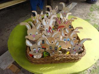 Selbstverständlich gab es auch etwas für die Kreativen, es wurden Vögel getöpfert und Holz-Osterhasen bemalt.