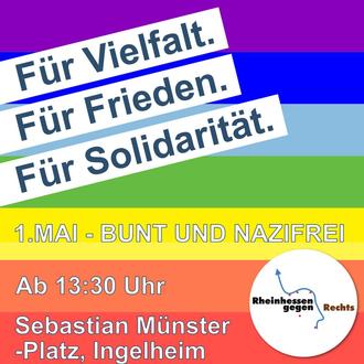 „Der Erste Mai ist ein Tag mit einer langen Tradition. Er steht für Vielfalt, für Frieden und für Solidarität! Diese Werte sind jedoch nicht selbstverständlich. Sie mussten erkämpft und müssen verteidigt werden. Dafür tritt auch Rheinhessen gegen Rechts e. V. ein“, erklärt Roland Schäfer, Vorsitzender des Vereins Rheinhessen gegen Rechts. „Wir werden uns dem Aufruf von InRage, dem DGB u.a. anschließen und gegen den geplanten rechtsextremen Aufmarsch und für ein buntes, vielfältiges Ingelheim demonstrieren.“ Los geht es ab 13:30 Uhr auf dem Sebastian Münster-Platz.