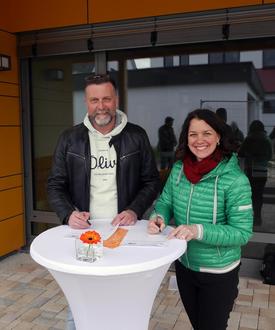 in.betrieb-Geschäftsführer Michael Huber und Bürgermeisterin Eveline Breyer unterzeichnen die Betreibervereinbarung