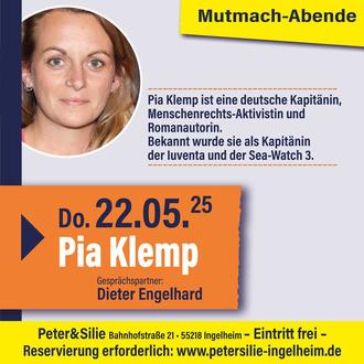 Die erste Mutmach-Abend findet am Donnerstag, 22. Mai, von 19 bis 21:00 Uhr, im Restaurant Petersilie (Bahnhofstraße 21) statt. Zu Gast ist an diesem Abend die deutsche Kapitänin, Menschenrechts-Aktivistin und Romanautorin.