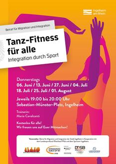 Von Juni bis August gibt es ein sportliches Angebot in der Neuen Mitte: Der Beirat für Migration und Integration (BMI) lädt alle Ingelheimer*innen zum Mitmachen bei der „Tanz-Fitness“ ein. Die zertifizierte Zumba-Trainerin Maria Cavalcanti bietet sieben Einheiten auf dem Sebastian-Münster-Platz an, bei denen alle kostenlos und spontan mitmachen können.